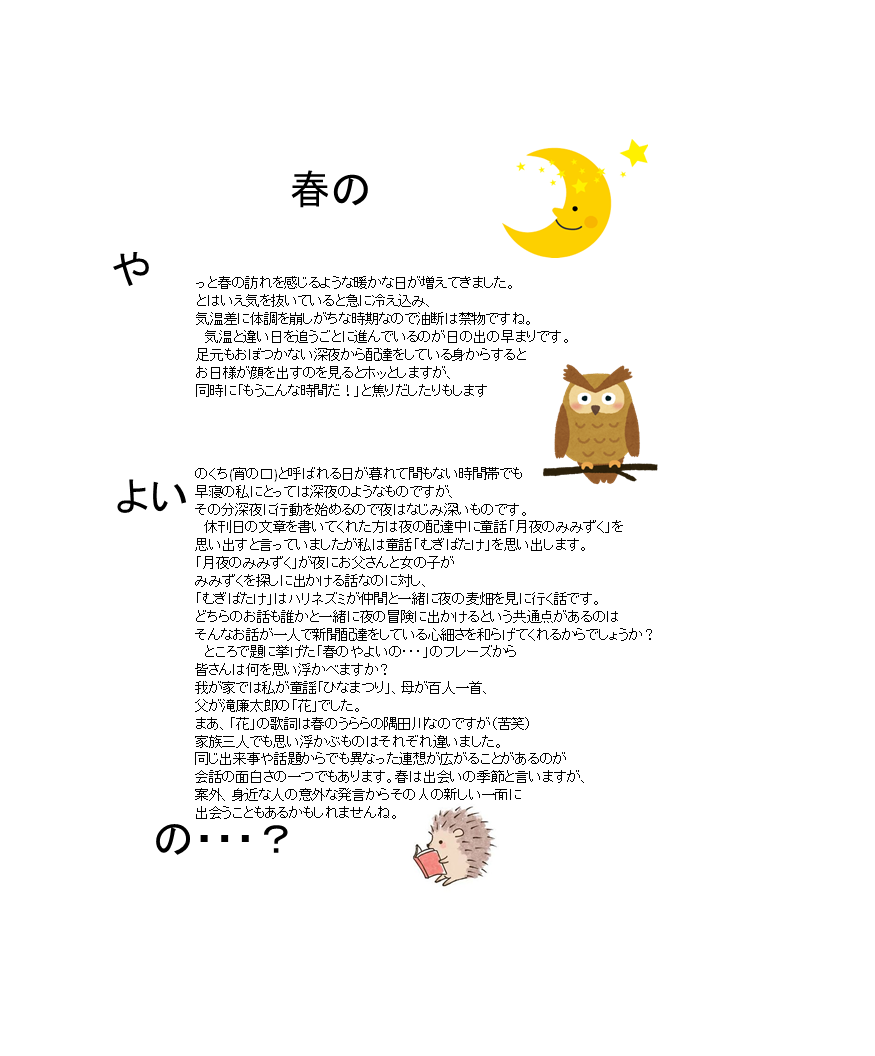 春の や っと春の訪れを感じるような暖かな日が増えてきました。とはいえ気を抜い…
